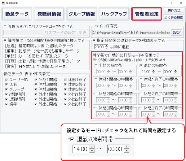 時間帯で自動的に打刻モードを変更したい場合は、