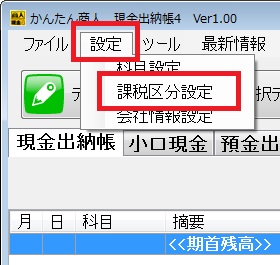1.ソフトを起動し「設定」メニューから「課税区分設定」を選択します。 2.「追加」または「変更」をクリックします。 3.「税率」の数値を入力して税率の設定をし、 「追加」または「変更」→「閉じる」をクリックします。