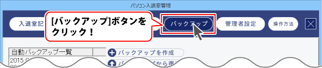 管理者画面が表示されましたら、[バックアップ]ボタンをクリックします。
