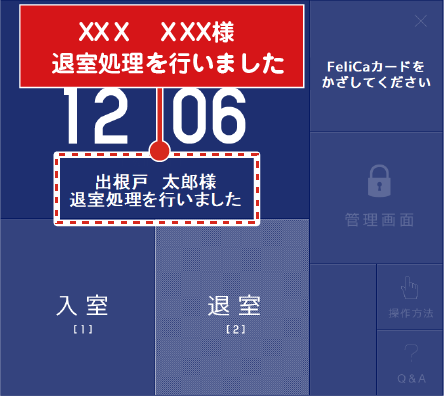 [XXXX様 退室処理を行いました]とメッセージが表示されましたら、