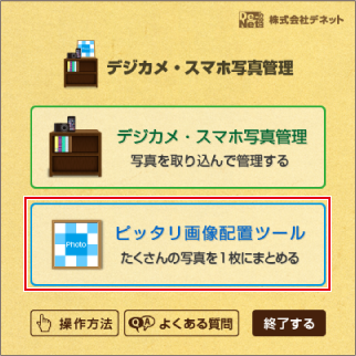 「デジカメ・スマホ写真管理」を起動して、ランチャー画面を表示します。