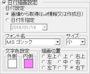 画像に挿入する日付の設定をします。 |