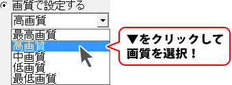 ▼をクリックして画質を選択します。