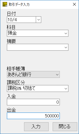 | 入力 | 入力した内容を帳簿に入力します。 |