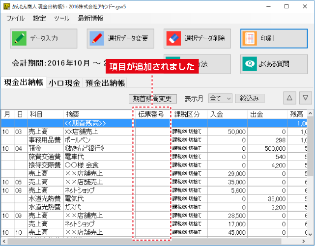 データ入力画面で、かんたんな内容を入力できる項目欄が追加されます。