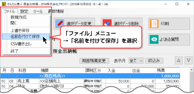 開いたバックアップファイルは、「名前を付けて保存」してください。