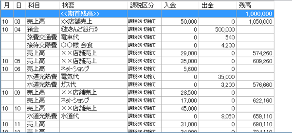 帳簿に入力した内容が表示されます。