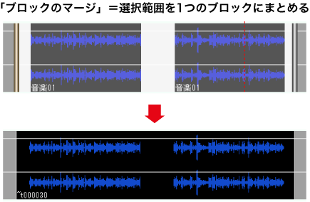 「ブロックをマージする」は、選択範囲を1つのブロックとしてまとめる機能です。