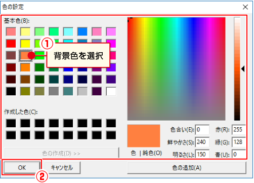 ※背景色の設定は、「もどす」ボタンで作業をもどすことができませんのでご注意ください。