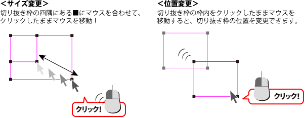 切り抜き枠はマウス操作でサイズと位置を変更し、設定することができます。
