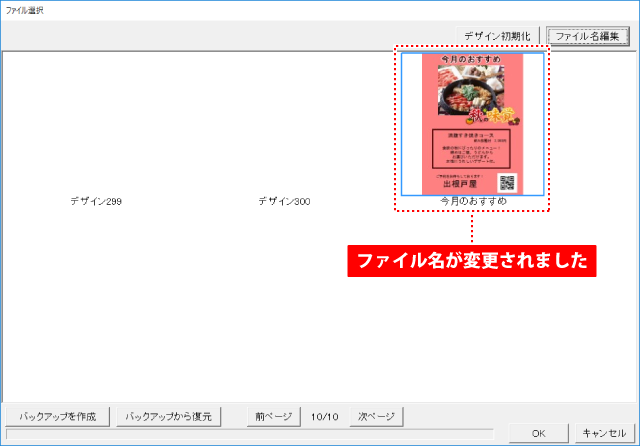 ファイル名変更画面が表示されますので、ファイル名を入力して、