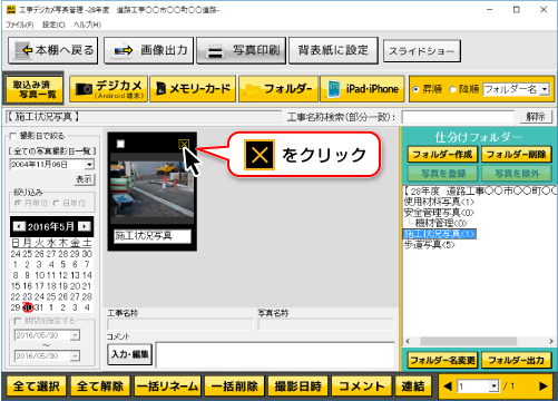 確認画面が表示されますので、はいボタンをクリックしますと、写真が削除されます。