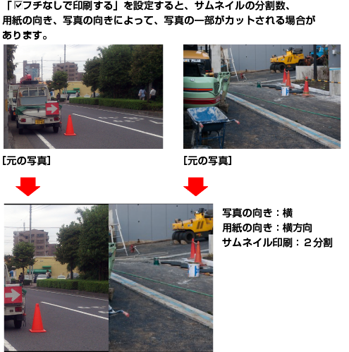 ①サムネイル印刷の場合は、左上を先頭に印刷されますので、写真表示を