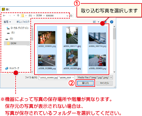 手動で取込元を指定する場合や、パソコンに保存しているフォルダーを指定する場合は