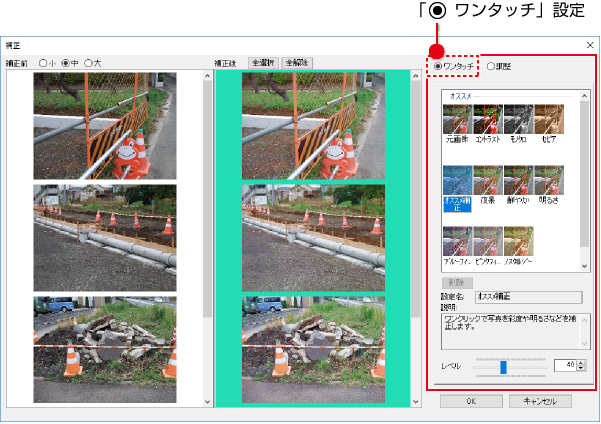 ②写真サイズを縮小して取り込む、ファイル名を変更して取り込む、一括補正して取り込む場合は設定を行います。(詳細は下記のMEMOをご覧ください)