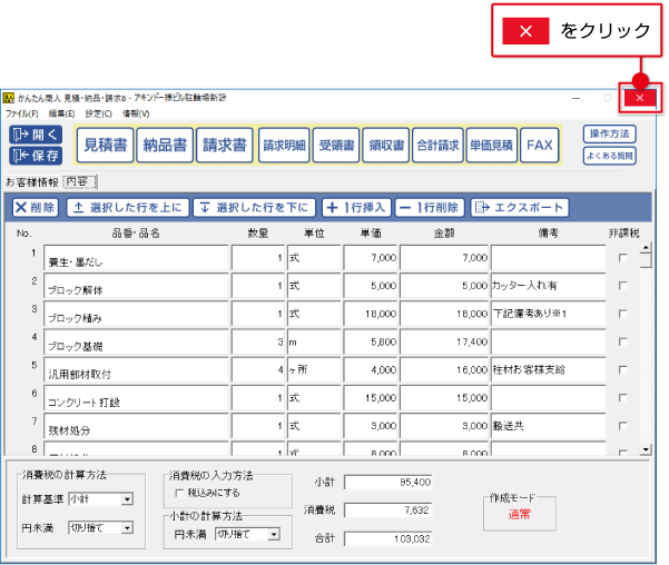 「かんたん商人 見積・納品・請求8」とたどって「かんたん商人 見積・納品・請求8」 をクリックしますと、
