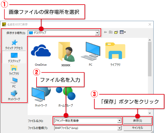 ②書き出すファイル形式(BMPまたはJPEG)のボタンをクリックします。