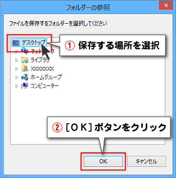 保存する場所を選択して、[OK]ボタンをクリックします。