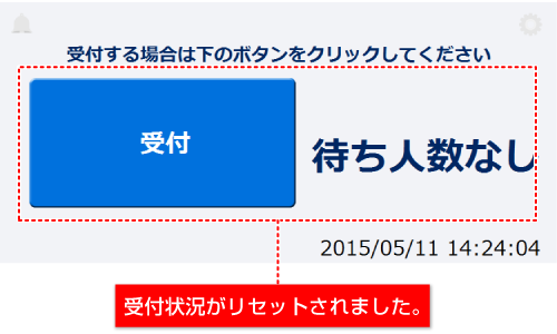 受付名の発券番号が「1」と表示され、受付状況がリセットされます。