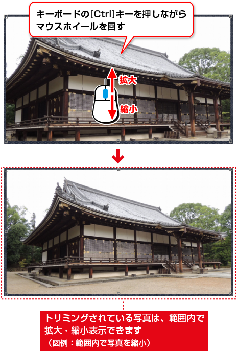 トリミング中の画像がシートの枠内で拡大・縮小します。