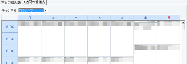 チャンネルで選択した局の1週間の番組表が表示されます。
