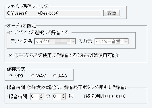 チェックが入っている場合、ループバックを使用して 録音します。
