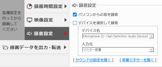 □ パソコンからの音を録音