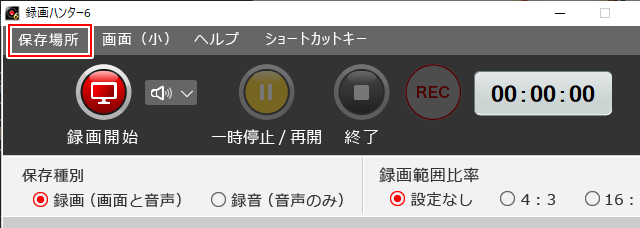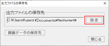 「録画データの保存先」ボタンをクリックします。