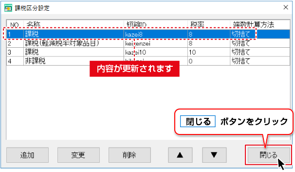 取引データ入力画面の課税区分の選択メニューが更新されます。