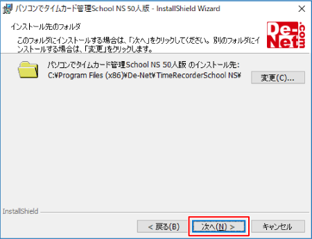 インストール先を変更することができます。変更しない場合は「次へ」ボタンをクリックしてください。