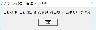 出勤日時から退勤日時までの時間を20時間以上にした場合、下記のメッセージが表示されます。