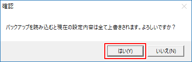 バックアップを読み込むと現在の設定内容は全て上書きされます。