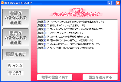 WindowsXP以外のOSがインストールされているコンピュータで本ソフトの設定を適用するとさまざまな障害が起こる恐れがございますので、ご使用は絶対におやめください。