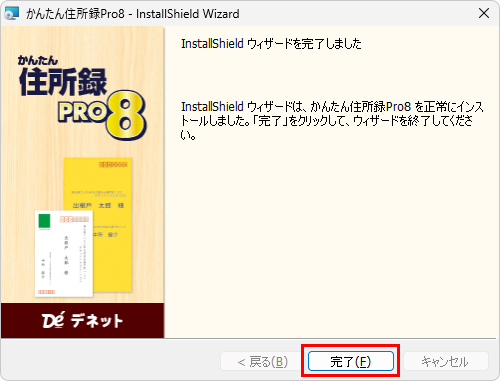 3、インストールが終わりましたら完了ボタンをクリックしてください。