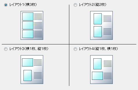 ● ページ数印刷 ● 用紙サイズ(A4サイズに1ページずつ印刷 / A3サイズに2ページずつ印刷) ● 両面印刷(A4サイズのみ) ● 画質設定(低 / 標準 / 高) ● 綴じ代余白(小 / 中/ 大) ● フォント設定(表紙:項目名 / 項目テキスト 写真:写真タイトル / テキスト本文) ● PDF用フォント設定(MS明朝 / MSゴシック) |