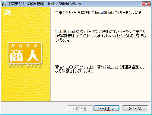 2、下図のようなウィンドウが表示されるので「次へ」ボタンをクリックしてください。