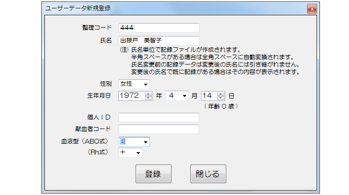 日々の身体検査や血液検査を記録したいユーザーを登録します。